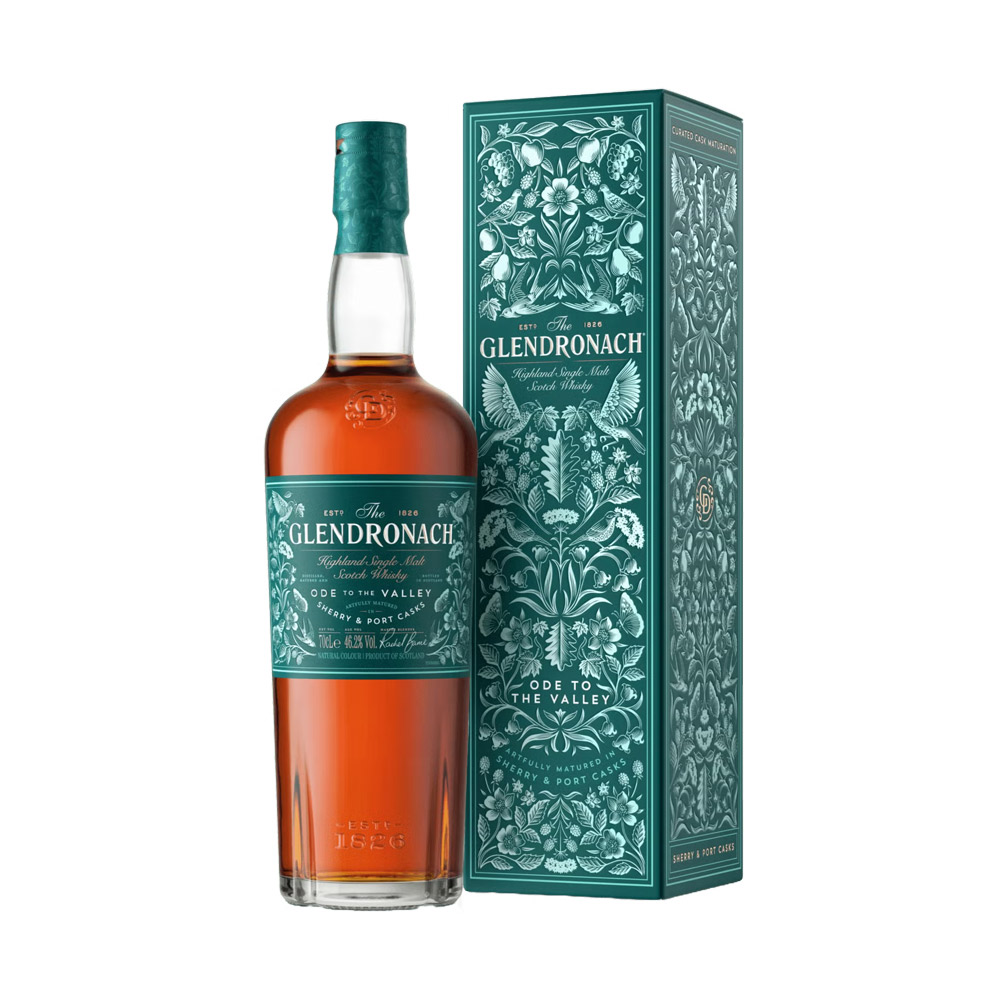 Το Glendronach Ode to the Valley είναι η πιο φρουτώδης έκφραση στη συλλογή Anthology’s Masters, η οποία κυκλοφόρησε για την 200η επέτειο του αποστακτηρίου. Παλαιώνει σε έναν συνδυασμό βαρελιών ruby port από την κοιλάδα Douro της Πορτογαλίας και τα χαρακτηριστικά βαρέλια sherry του αποστακτηρίου Glendronach. Το αποτέλεσμα είναι ένα ουίσκι με φρουτώδη αρώματα και λουλουδένιες νότες, που οδηγούν σε σμέουρα, crumble μήλου και ζαχαρωμένο τζίντζερ.