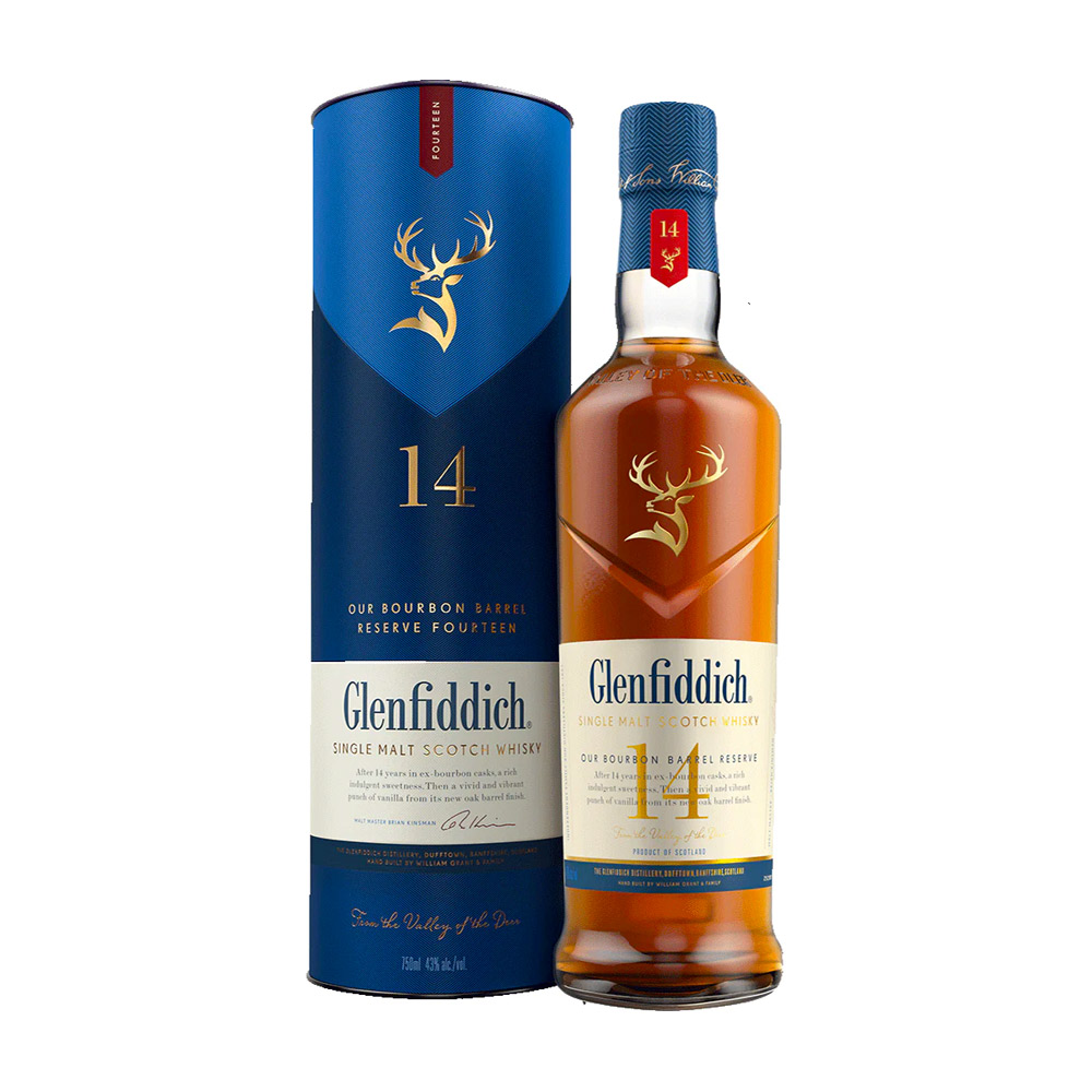 Το Glenfiddich 14 Ετών Bourbon Barrel Reserve συνδυάζει άψογα την ομαλή κομψότητα των ουίσκι της Σκωτίας με τη γλυκιά σπιρτάδα των αμερικάνικων μπέρμπον. Αρχικά, το ουίσκι ωριμάζει σε πρώην βαρέλια American Oak και στη συνέχεια τελειώνει το ουίσκι σε απανθρακωμένα νέα βαρέλια American Oak για ένα πρόσθετο στρώμα πλούτου και πολυπλοκότητας στο single malt.