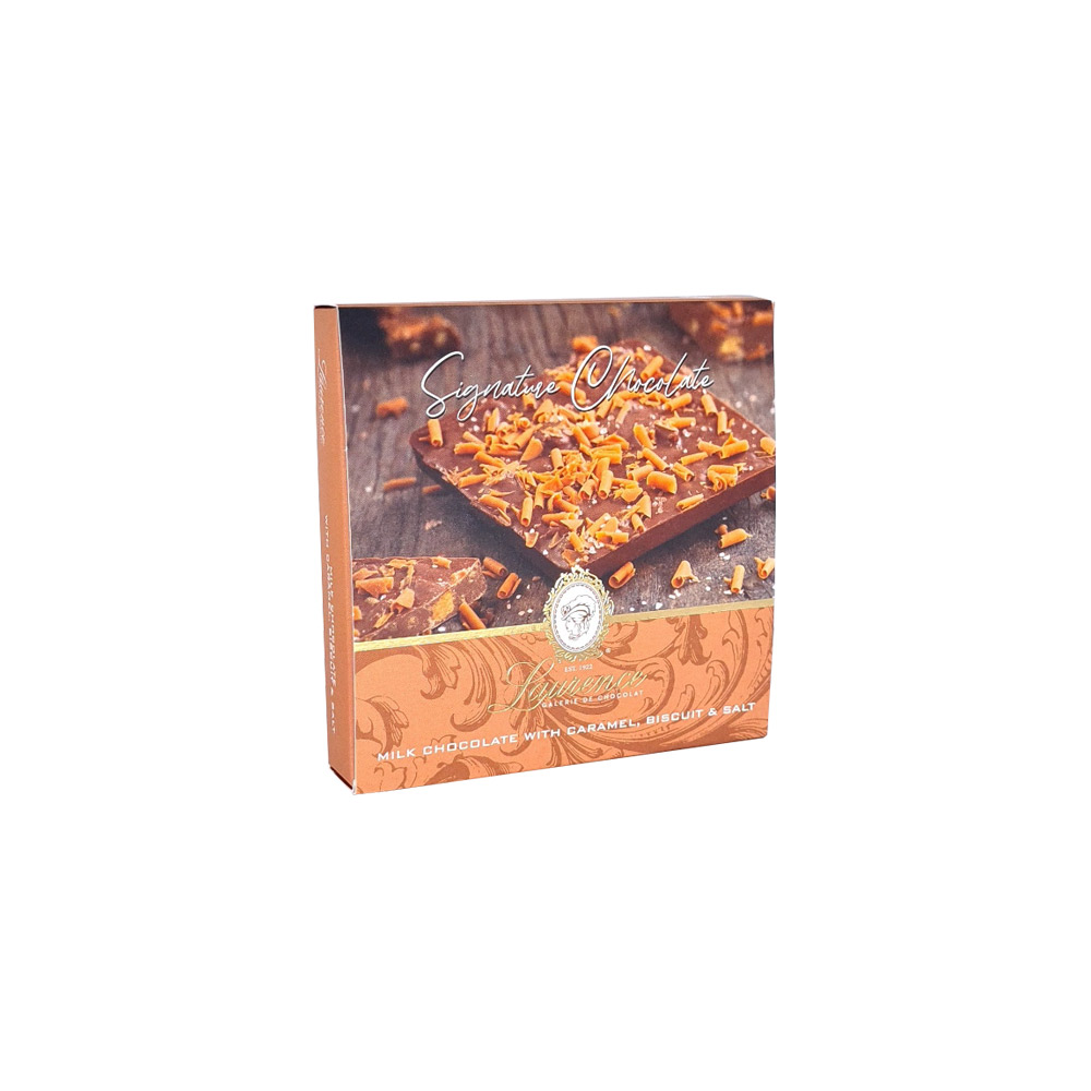LAURENCE SIGNATURE ΓΑΛΑΚΤΟΣ ΜΕ ΚΑΡΑΜΕΛΑ, ΜΠΙΣΚΟΤΟ & ΑΛΑΤΙ 100g